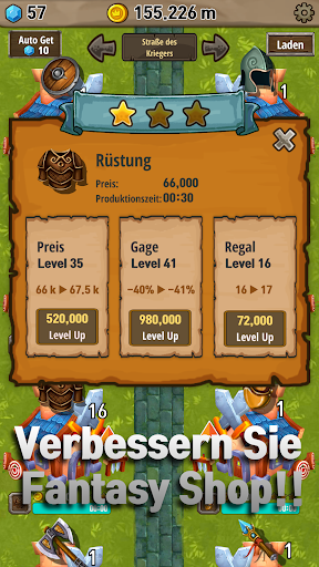 Sie können verschiedene Läden in der Restaurant Straße, Straße des Kriegers und Straße des Zauberers eröffnen und Artikel verbessern.