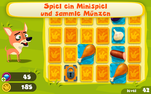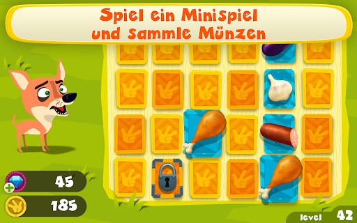 Spiel ein lustiges Gedächtnisspiel mit einem coolen Hund - Finde Paare für alle Karten mit Essen und ernähre den Hund! Du bekommst Münzen und Kristalle die du für neue Möbel ausgeben kannst! Spiele für Kleinkinder!