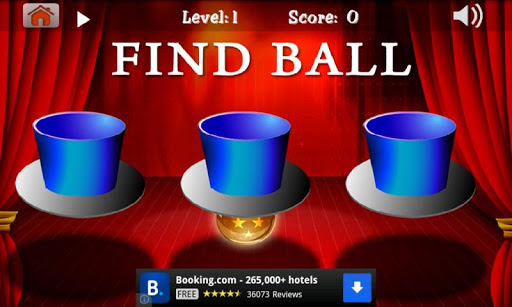 ★☆★☆★ You want to test and sharpen your power of observation and concentration but you don’t like try some boring methods ★☆★☆★★☆★☆★ You want to relax after stressful hours but keep you brain thinking? ★☆★☆★find Ball 2013 (free) is the best choice for you. Let relax and improve the brain skills everywhere and anytime!================================*****INTRODUCTION*******You are interested in: classic 3 cups and a ball or find the ball game? You always wish to play it everywhere, every time? “Where is ball” will satisfy your demand. This app is same as 3 cups and a ball or find the ball game.It is easy to play. The rule is:-To start, the game will show you which cup has one ball.-Then they will shuffle the cups. Keep your eyes and focusing on the correct cup.-When the game stops shuffling, make your guess and pick the right cup.With “Where is ball” you can:-Improve eye- catching skill-Complete observation skill-Enhance the concentration ability===================================***** FEATURES ******Simple, clear and attractive images *Sound effects*Levels are ordered from easy ones to difficult ones*4 levels*Entertainment and education for all agesThis is the great method for your kids to practice brain skills effectively and conveniently.DOWNLOADFREE RIGHT NOW!