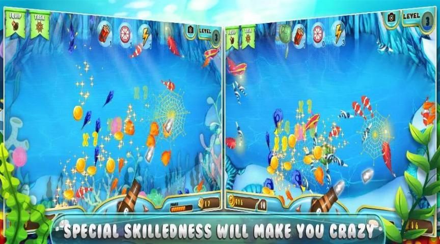 In the middle of the ocean, there is something to be enjoyed, where you can swim in the sea, catch fish for a ride. Practice good, flexible skills using cannons to catch different fish, pieces of bait
