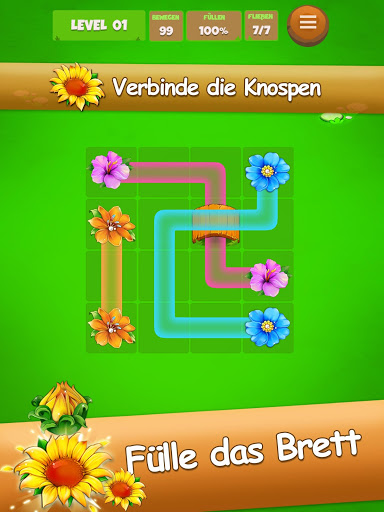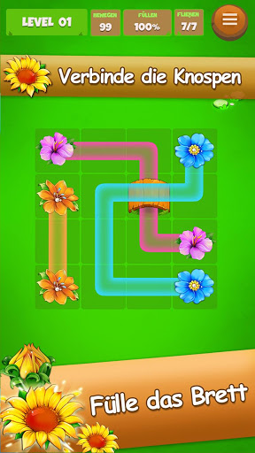 Verbinde gleiche Knospen um diese blühen zu lassen. Fülle das Brett um das Level abzuschließen.