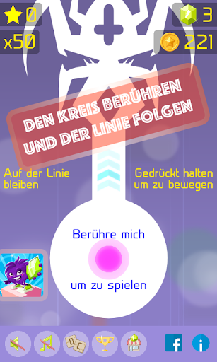 Berühre den Ball und versuche mit deinem geschickter Finger auf der tanzende Linie zu bleiben. Rolle auf der Linie um möglichst weit zu kommen. Berühre nicht die Wände und sei für deine Fingers auf den beweglichen Teilen in der Sky aufmerksam. Versuche den besten Highscore zu erreichen und zeig durch die integrierten „google play games services“ Bestliste die ganze Welt wie gut du bist!