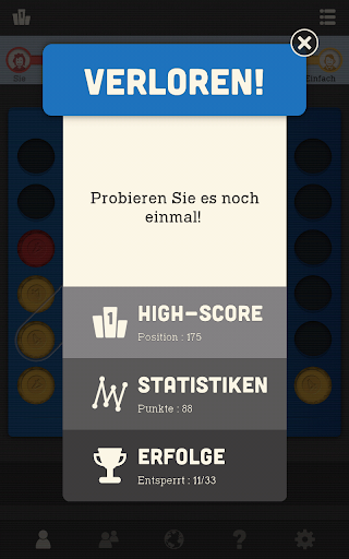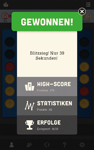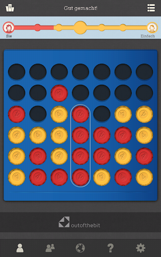 Verbinden Sie 4 gleichfarbige Spielsteine, bevor Ihr Mitspieler dies schafft. Sie können dieses populäre Spiel ab jetzt immer spielen, wenn Ihnen nach Entspannung oder auch nach einer kleinen Herausforderung ist. Auch gut dafür geeignet, Kindern strategisches Denken zu vermitteln. Spielen Sie gegen einen Freund oder gegen einen Computer und verfolgen Sie in der App, wie sie immer besser werden. Ein Klassiker! Jetzt kostenlos spielen! :)