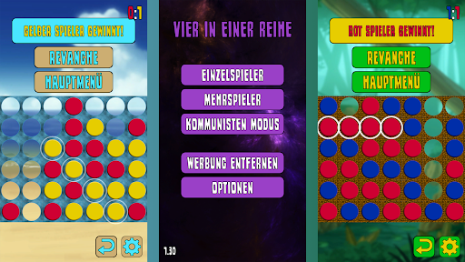 Ein klassisches 'Vier in einer Reihe' Spiel auf einem 7x6 Feld. Spiele alleine oder mit Freunden lokal am Smartphone oder Tablet. Wer zuerst 4 Steine seiner Farbe in einer Reihe (horizontal, vertikal oder diagnoal) anordnet gewinnt.
