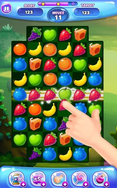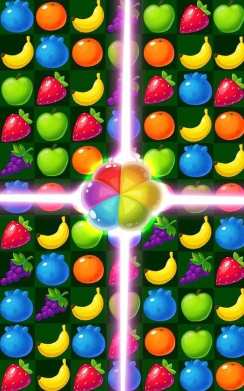 - Match 5 fruits in a row to get a colorful rainbow ball.