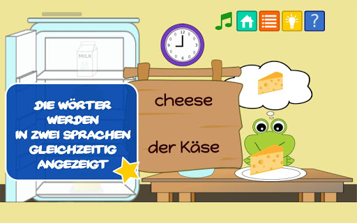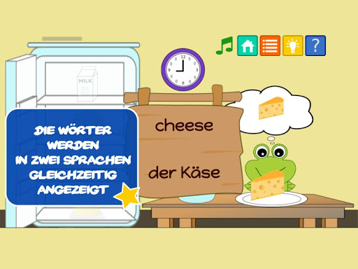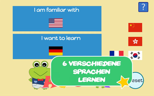 Diese Sprachlernspiele bietet Kindern eine intelligente und unterhaltsame Art zu lernen. Es ermöglicht angefangen von Kleinkindern, Kindergartenkinder, Vorschulkindern und jungen Erwachsenen, ihre ersten Wörter in 6 verschiedenen Sprachen zu lernen:
