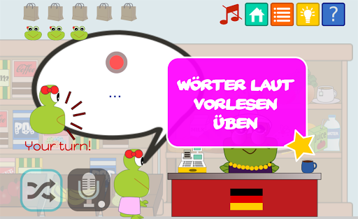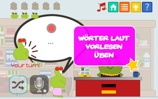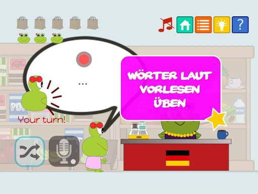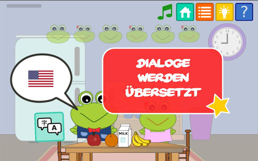 des Spiels Sprechen und Zuhören zu entwickeln! Es lehrt Kinder zweisprachig zu sein, indem die Wörter in den zwei Sprachen gleichzeitig angezeigt werden, so dass mehrsprachigen Kindern, ihre zweite oder dritte Sprache einfacher erlernen können. Die Kinder können sogar Punkte sammeln, wenn sie fleißig die Lektionen spielen und die Punkte einsetzen, um einen Bauernhof aufzubauen und zu unterhalten.