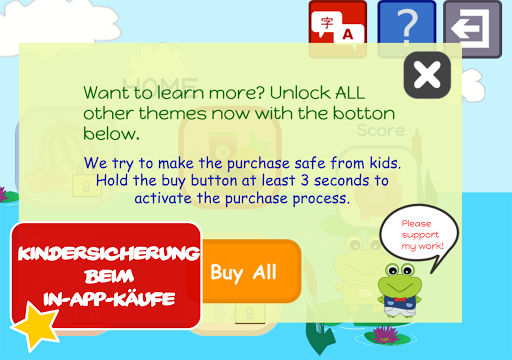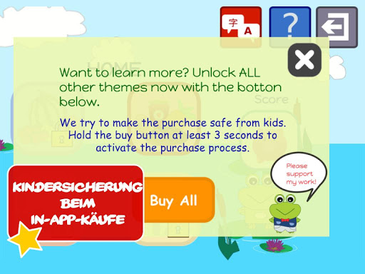 Geben Sie Ihren Kindern einen Wissensvorsprung und lassen Ihre Kinder mit dieser Kinder App Spaß haben. Diese Kinder App ist eine unterhaltsame und kinderfreundliche Lernspiel App, die Ihren Kindern hilft, verschiedene Sprachen zu lernen.