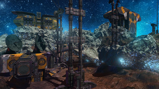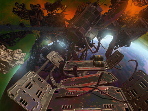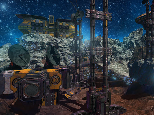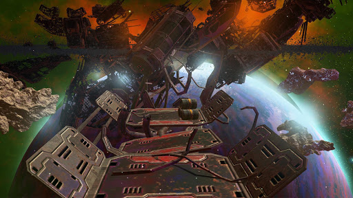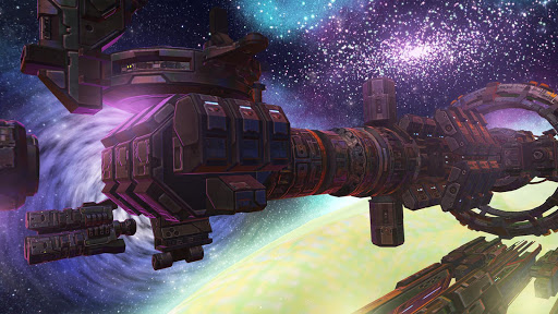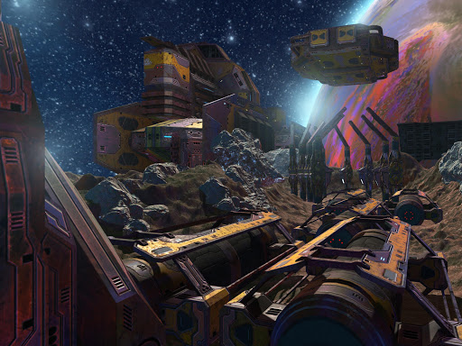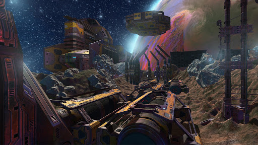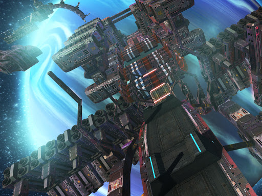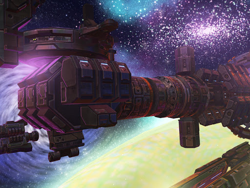 Fliege mit einem Shuttle ins All und sehe ferne Raumstationen und galaktische Strukturen abgelegener Zivilisationen auf deinem Raumflug.