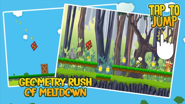 Geometry Rush of the Meltdown are made by a team hengames of top hit game app makers. Surf & jump together with Geometry Rush of the Meltdown from the spikes and monsters through the jungle, beach, before he crumble into pieces! Fly and flip your way in the fun and challenging spike obstacles. Easy to play but hard to master; flex your fingers and try!