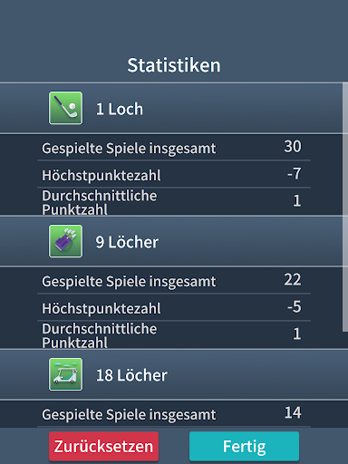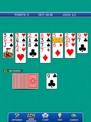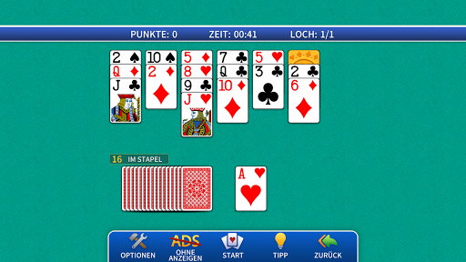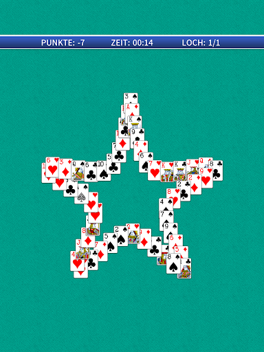 Ziel des Spieles ist es, den Golfkurs mit entweder einem, neun oder achtzehn "Löchern" zu beenden. Jedes "Loch" ist ein Tableau aus 7 Säulen mit je 5 aufgedeckten Karten, die gespielt werden. Eine Zusatzkarte wird als Basis des Fundaments gespielt. Die verbleibenden 16 Karten werden verdeckt hingelegt, um den Stapel zu bilden und sind Ihre "Züge". Um ein Loch zu gewinnen, müssen Sie alle Karten auf dem Tisch mit so wenig Zügen wie möglich verspielen, genauso wie im echten Golfspiel. Karten werden von niedrigster zu höchster oder höchster zu niedrigster gespielt, egal welche Farbe und welches Symbol. Dafür ist das Ziehen und Bewegen von Kartenstapeln nicht notwendig. Beweisen Sie Ihre Fähigkeiten, erzielen Sie höchste Punktzahlen, seien Sie der/die Beste in der Rangliste, erhalten Sie Prämien und teilen Sie Ihre Ergebnisse mit Freunden. Golf Solitär ist einfach zu lernen, aber schwer zu meistern.