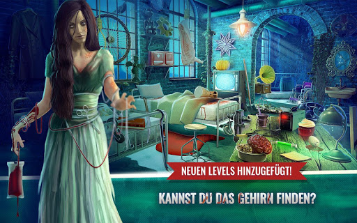 Reinigen Sie das Krankenhaus so schnell wie möglich! Betreten Sie die Nervenklinik und spüren Sie die Krankenhausangst! Laden Sie Horror Irrenanstalt Flucht Wimmelbildspiel herunter und fühlen Sie totalen Terror! Abenteuer der Flucht aus der Irrenanstalt werden Sie in einen Schlagmodus bringen - Sie werden Zeit genießen, dieses Wimmelbildspiel des Krankenhauszimmers zu spielen. Geister Asyl ist voller mysteriöser Geister! Betreten Sie die Spukräume und suchen Sie nach den versteckten Objekten - Spritzen, Kissen, blutige Kleidung und andere gruselige Dinge.