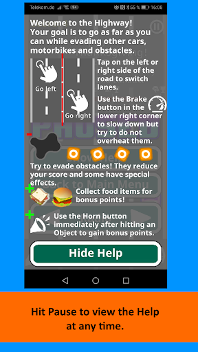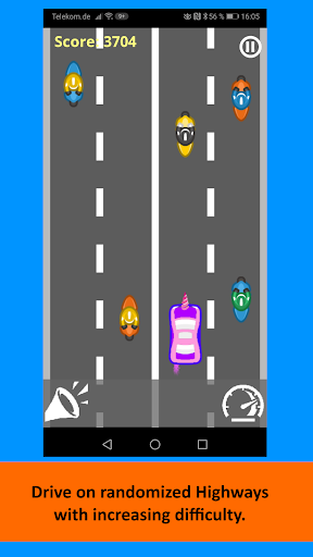Fahre auf zufälligen Autobahnen mit zunehmender Schwierigkeit und versuche, Hindernissen auszuweichen.