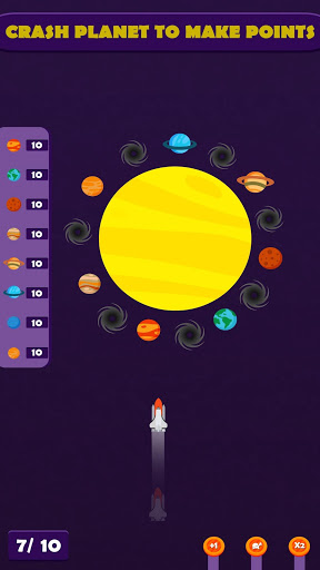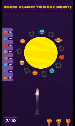 Platz Tafel ist Spiel wie Snooker Board, nur eine Änderung im Platz Board. Wirf die Rakete auf einen hohen, spitzen Planeten. Sie haben 10 Raketen, um Ihr Ziel zu erreichen. Sei vorsichtig und schieße nicht auf ein Schwarzes Loch, wenn du auf ein Schwarzes Loch schießt, damit dein Spiel vorbei ist. Sie können Leistungsverstärker verwenden.