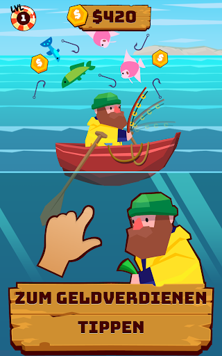 Einfache und fesselnde Spielmechanik: Tippe, um möglichst viele Fische zu fangen und Geld zu verdienen!