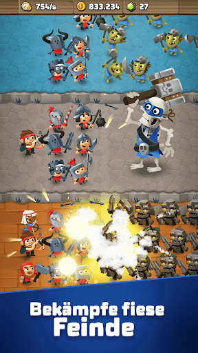 Investiere Gold in deine Ritter oder sammle Helden, um epische Schlachten gegen deine Feinde zu schlagen.
