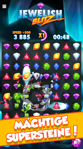 Jede einzelne Runde Jewelish Blitz bietet dir 60 haarsträubend spannende Sekunden voller Juwelen-Verschiebe-Action! Wie passt jetzt Juwelen verschieben und Action zusammen? Eigentlich ganz einfach: hier kracht und explodiert es am laufenden Band. Dazu braucht es allerdings ein paar Skills. Vornehmlich brauchst Du eine hervorragende Auge-Finger-Koordination. Während dein Finger noch die letzte Kombo swiped, ist dein Auge schon wieder auf der Suche nach der nächsten.