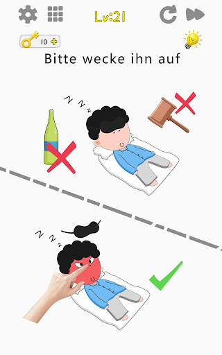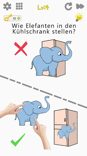 Unsere kleinen Tricks lassen sich nicht mit gesundem Menschenverstand lösen. Bitte verstoße gegen die Regeln, springe aus dem gesunden Menschenverstand heraus und setze deine Weisheit ein, um unsere cleveren Tricks zu bestehen.