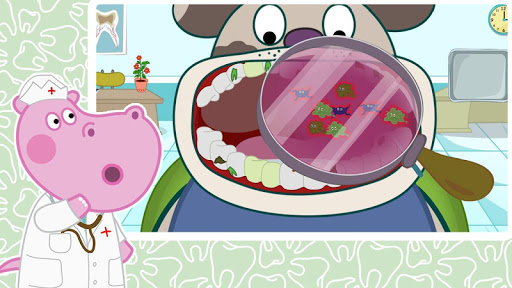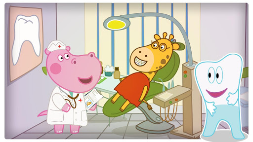 Jeder mag, wenn die Menschen miteinander lächeln. Lächeln macht uns glücklich. Man muss regelmäßig auf die Zähne aufpassen, um unser Lächeln schön zu machen. Sie müssen Zähne mehrmals am Tag putzen. Wenn Ihre Zähne krank werden, müssen Sie einen speziellen Arzt besuchen. Zahnarzt kümmert sich um die Zähne. Heute wird unsere beliebte Hippy mit Ihnen erfahren, welche Aufgaben jeden Tag Zahnarzt erledigt. Kids Hippo Krankenhaus ist für jemanden offen! Treffen wir Abenteuer. Unser Kinderkrankenhaus wartet auf seinen Zahnarzt. Es wartet auf Sie!