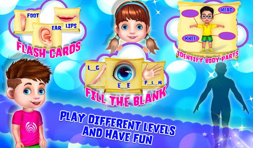 In today's world the education is smart, so Learning human body part game is very help your kids to learn about human body parts easily. In this educational game, kids can recognize different human body parts like Head, Eyes, Arms, Ear, Hand, Legs, brain and much more. Using this game kids not only knows about their body parts, but they learn in depth with a live animated fun video and easy example of it.