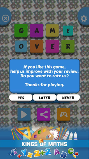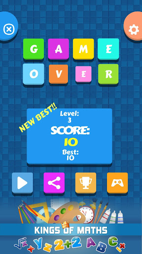 King of Maths ist ein dynamisches Spiel, das viel Spaß macht und bei dem du bei jeder Herausforderung versuchen musst, dich zu verbessern. Die Musik ist schön, Sie können die Anwendung mit Ihren Freunden teilen.