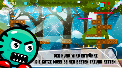 Der Hund wird entführt. Die böse Königin tat das. Der Hund lebt im dunklen Käfig. Die Katze muss seinen besten Freund retten. Sie muss die Königin töten. Seien Sie vorsichtig!