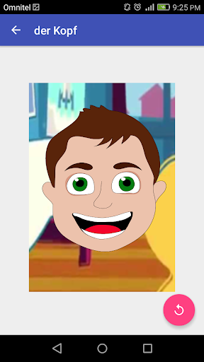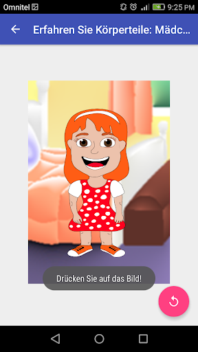 - Lernmodus, in dem ein interaktives Bild präsentiert wird; Wenn der Körperteil berührt wird, wird der Name des Teils gesprochen