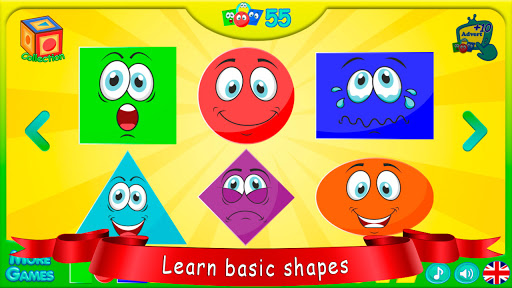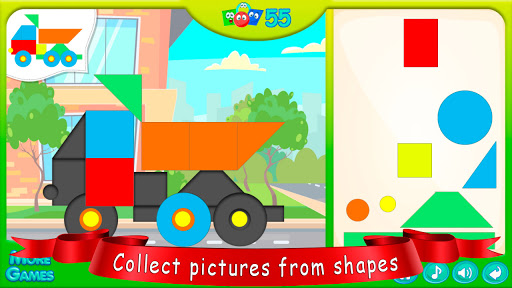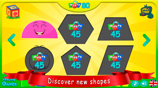 Hurry up to evaluate the new version! Now the figures in the game come to life, they will be upset and rejoice at new victories together with you. Also, six new shapes have been added. For correctly completed levels, the child will receive geometric shapes as a reward, for which he will be able to open new collections. A collection is a kind of game where a child needs to assemble an image from geometric shapes, which is shown in the upper left corner of the screen.