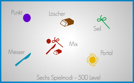 - Sechs Spielmodi: Punkt, Radierer, Seil, Messer, Portal und Mix-Modus