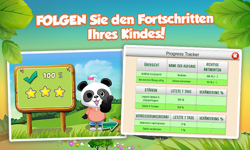 - LOLA PANDA® Fortschrittskontrolle – hält Sie über die Fortschritte Ihres Kindes auf dem Laufenden.