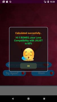 Play this free love test calculator app on your friends, your beloved partner or share your love match result with them by sharing it.