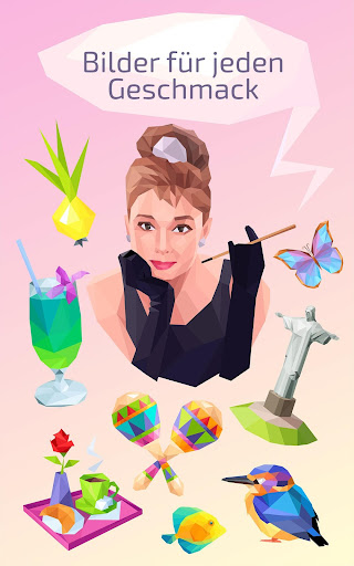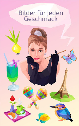 Poly Colors ist ein großartiger Vertreter des Genres des Färbenspiels. Genießen Sie die wunderschönen Zeichnungen, die einen unvergesslichen Eindruck und ein Kunsterlebnis hinterlassen. Laden Sie kostenlos unser Antistress-Malbuch herunter und vereinbaren Sie eine echte Kunsttherapie. Angenehme ruhige Musik im Hintergrund hilft dabei, in den Prozess des Zusammenlegens der Puzzleteile einzutauchen, sich nach einem Arbeitstag zu entspannen oder einfach nur, wenn Sie gelangweilt sind. Entwickeln Sie Ihre Fantasie und genießen Sie helle, farbenfrohe Bilder und Malvorlagen. Füge Rätsel nach Zahlen hinzu und erhalte fantastische 3D-Bilder. Unsere Anwendung Malbuch ist für Erwachsene und Kinder kostenlos geeignet. Es wird auch helfen, Ihr Gehirn zu trainieren, Feinmotorik und Fantasie zu entwickeln.