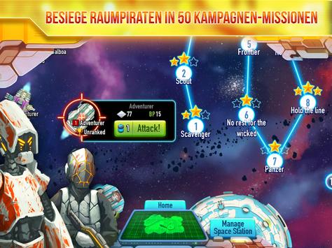 • Eroberungskampagnen – gewinne 50 Levels spannender Raumkampf-Action. Versuche, drei Sterne auf jedem Level zu bekommen und du erhältst Belohnungen und Materialien für den Abschluss von Missionen.