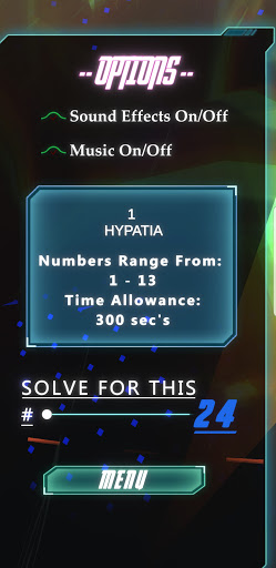 Lösen Sie 24 oder andere Nummer, auch im Menü Optionen verfügbar.Mit 6 Schwierigkeitsgraden High Scores und Timer M24 ist Maths 24 ein lustiges gefülltes Gehirn- und Mind-Building-Spiel.