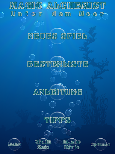 Magic Alchemist Unter dem Meer folgt den Regeln des klassischen beliebten Magic Alchemist aber schickt den Spieler dabei auf einen entspannenden Tauchgang. Ein kostenloses Spiel für stundenlangen Spielspaß. Wenn sie beim Spielen gern ein wenig Denken und Entspannen wollen ist dieses einfach zu erlernende aber fordernde Spiel genau das Richtige.