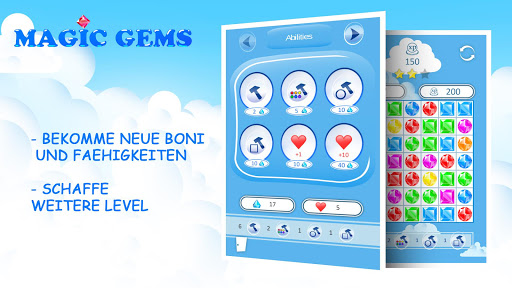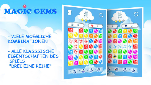 Sammle drei oder mehr Edelsteine der gleichen Farbe in eine Reihe, nutze die zusaetzliche Moeglichkeiten, sammle die Kombos und schaffe weitere Level.