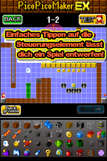 Du kannst sogar während des Bauens zum Testen spielen, indem du die "TEST"-Schaltfläche oben rechts auf dem Bildschirm antippst.