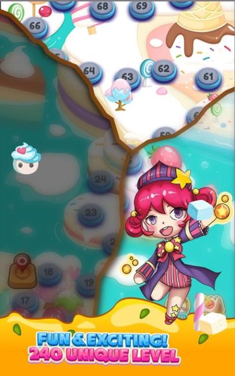 Over 240 levels with different objectives. Make matches of 3 or more magic potions, create spell blasts! Starts out simple, be warned that things get more and more interesting and challenging as you increase the levels.