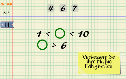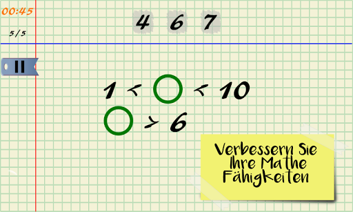 Dieses Lernspiel für Kinder aller Altersgruppen zu empfehlen, da es eine Vielzahl von Übungen, von leicht bis schwer. Durch Bildungs, dass wir fokussiert auf die Steigerung Kinder Fähigkeiten in Mathematik, der Entwicklung ihrer Fähigkeit, Übungen, indem Sie ihr Gehirn und Logik zu lösen. Auch bei der Lösung alle Mathematik-Traps können Sie mit Zahlen und Operatoren, die praktisch sind Brainfood spielen und hält daher süchtig nach math.