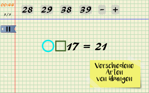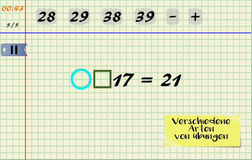 Eine mathematische Übung ist zeitabhängig; Auch gibt es eine feste Anzahl von Zügen. Diese beiden sind variabel, abhängig von der Schwierigkeit der jeweiligen Gleichung.