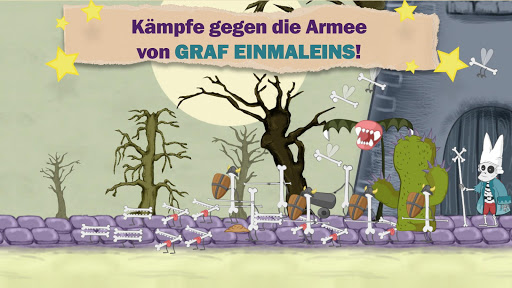 Wähle deinen Helden (einen kleinen Vampir oder eine kleine Hexe) und trete gegen Graf Einmaleins an!