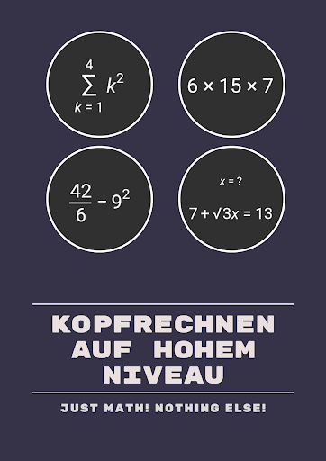 Trainiere dein Gehirn mittels der Mental Math App. Übe täglich und du kannst in der Zukunft getrost auf deinen Taschenrechner verzichten. Selbst schwierige Aufgaben für die du früher ewig überlegen musstest werden dir spielend leicht vorkommen. Probier es einfach aus, dein Gehirn wird es dir danken!