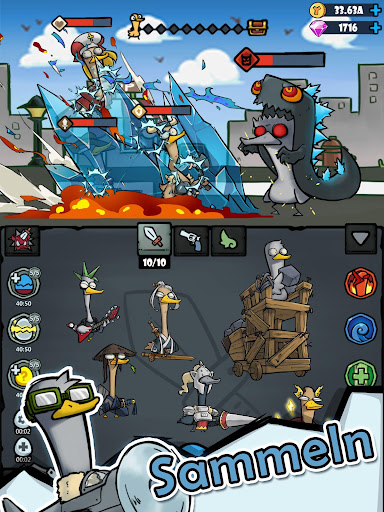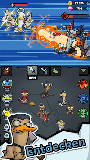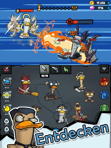 Deine Entenkrieger können automatisch kämpfen. Du kannst sogar offline Einnahmen erzielen.