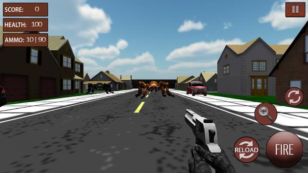 In the environment, there is a residential area in the city. A group of spiders have attacked on city, civilians are being evacuated, so you are a last hope for the residents in that siege area, you have to rescue the civilians with your accurate fighting tactics, you have to face and kill all spiders to clear the area. You have a TT pistol and a machine gun which are fully loaded.