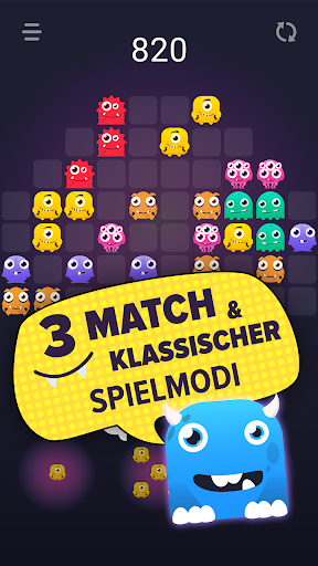 Es ist notwendig, Monster der gleichen Farbe in einer Reihe zu sammeln. In diesem Modus werden drei oder mehr Monster, die in einer Reihe gesammelt sind, zerstört.