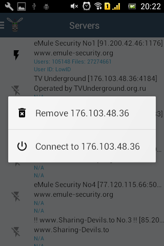 Die App wurde erstellt, um an ED2K (& quot; Edonkey2000 & quot; Protocol) -Netzwerken direkt von Ihrem Mobilgerät zu arbeiten!- Dies ist kein Fernbediener.Sie können Ihre Dateien nicht teilen!