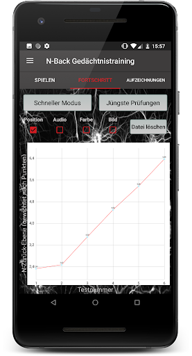 Standardmäßig startet die App auf Dual-N-Back mit Positionen und Sounds (Buchstaben). Das "Dual" in Dual-N-Back gibt einfach an, wie viele verschiedene Itemtypen Sie sich merken müssen. Sie können eine beliebige Kombination von Elementtypen auswählen, von einem einzelnen n-back bis zu einem quad n-back.