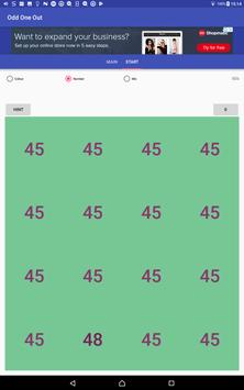 A simple game where you have to spot the odd one out. It can be set to be colour, or a number or a mixture of both.