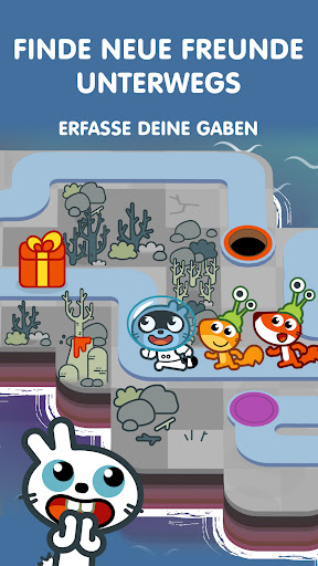 Unterwegs kannst du Freunde finden und Geschenke sammeln, die Pangos Sammlung von tollen Verkleidungen erweitern werden!