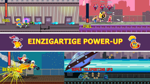 Testen Sie Ihre Reflexe als Super Heroes auf der Stadt fahren wird, Berühren Sie den Bildschirm zu springen, zertrümmern Feind, sammeln Münzen, schalte neue Helden, und sehen, wie weit können Sie laufen!